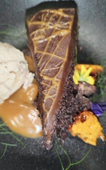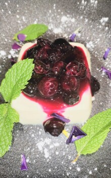 For dessert . . . we had a chocolate cake with caramel sauce, brownie bites and ice cream with honey comb, and blueberry panacotta.