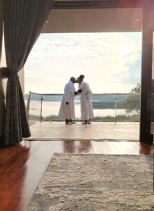 Goliath Heron is a presidential and bridal suite that comes with a King-size bed. This suite is not only beautiful . . . it is super spacious. It has an en-suite bathroom that has a spacious shower, a spa bath, and a toilet plus double basins. The suite overlooks the Korsman Bird Sanctuary, so we had beautiful views to delight ourselves in. The sunrise was particularly beautiful to watch the next morning.